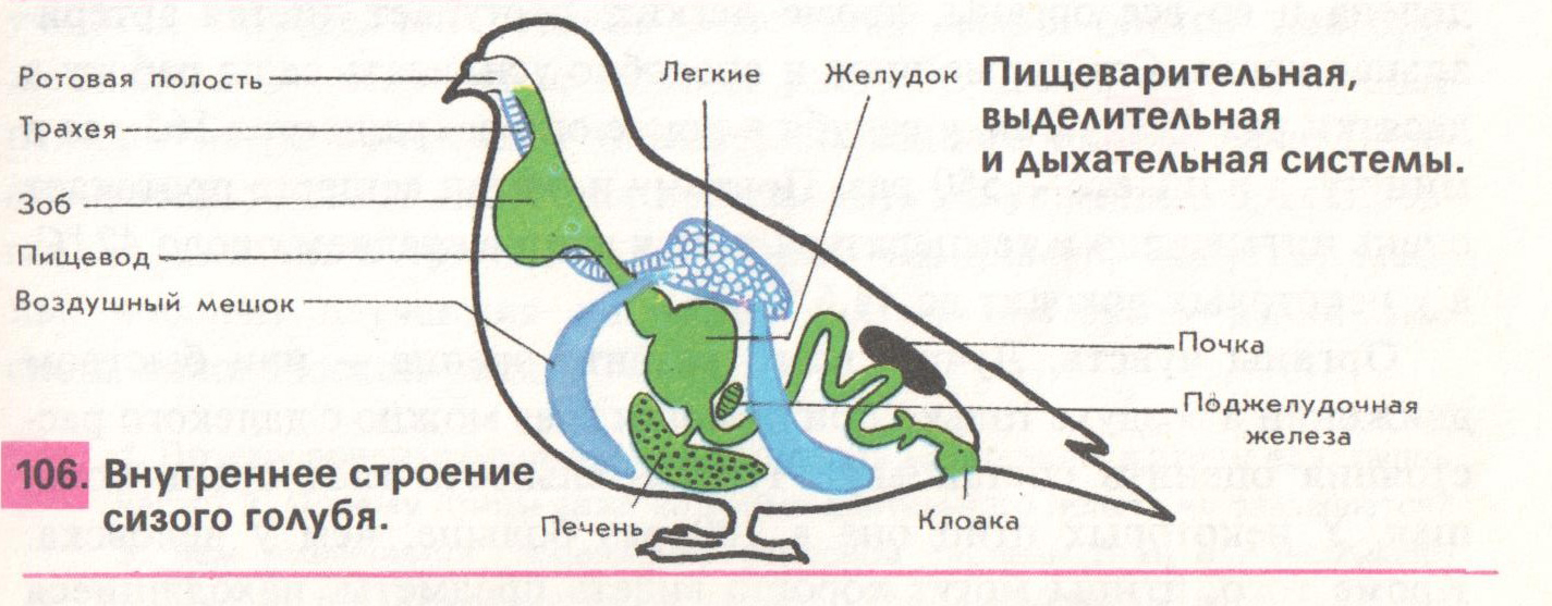 Строение птицы на примере голубя